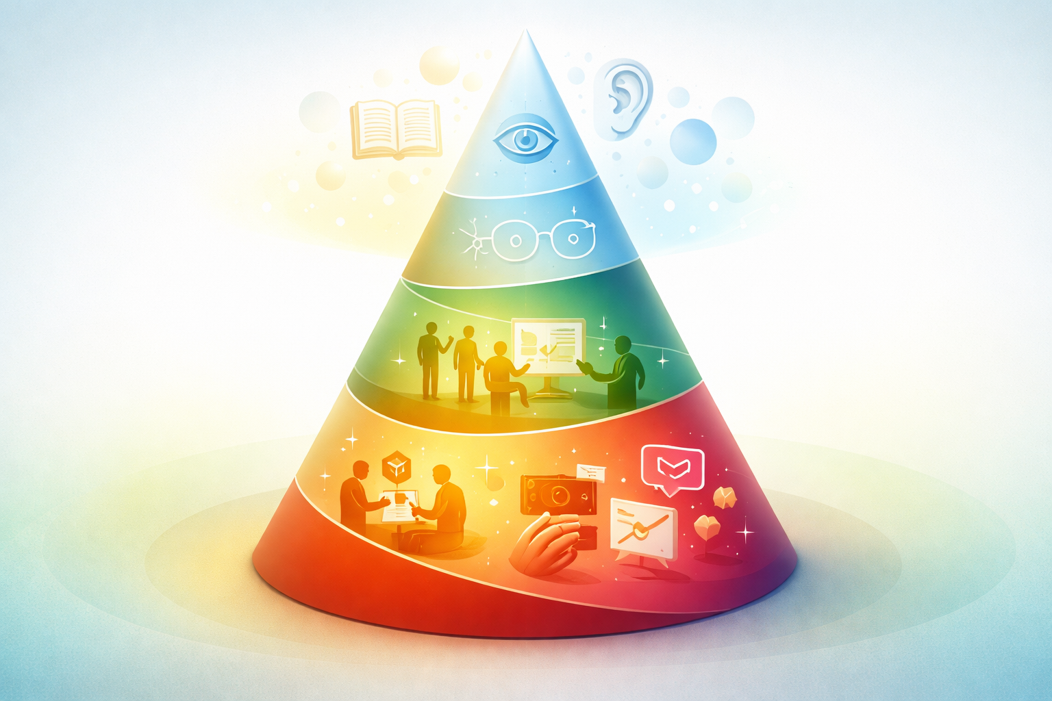 Often displayed graphically as a cone — see http://teacherworld.com/dalescone.gif — Dale’s Cone has had a profound impact on the way we teach both children and adults.
