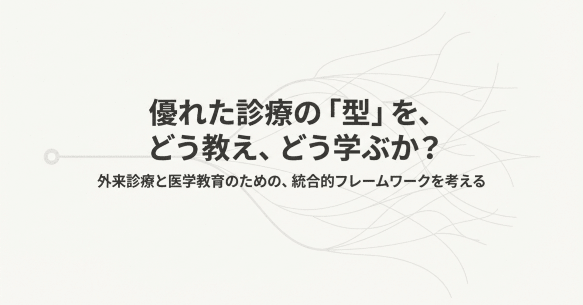 1. 診療の構造の提示=指導の構造の提示ということで、臨床家や学習者(直接患者を診療する人)と指導者が同じモデルで診療の抜け落ちない完結と指導の抜け落ちない完結を達成しよう、としているところ