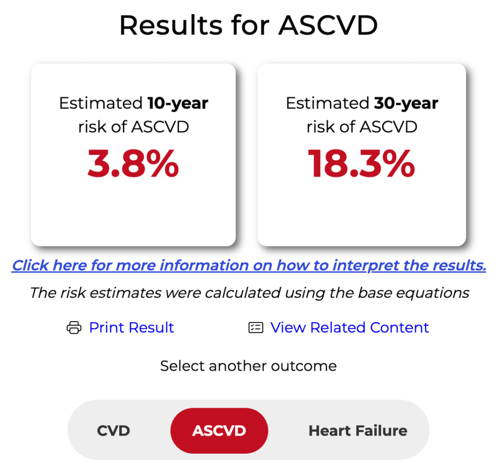 - 結果は10年リスクと30年リスクの両方が出る(30年リスクの使用法は後述)